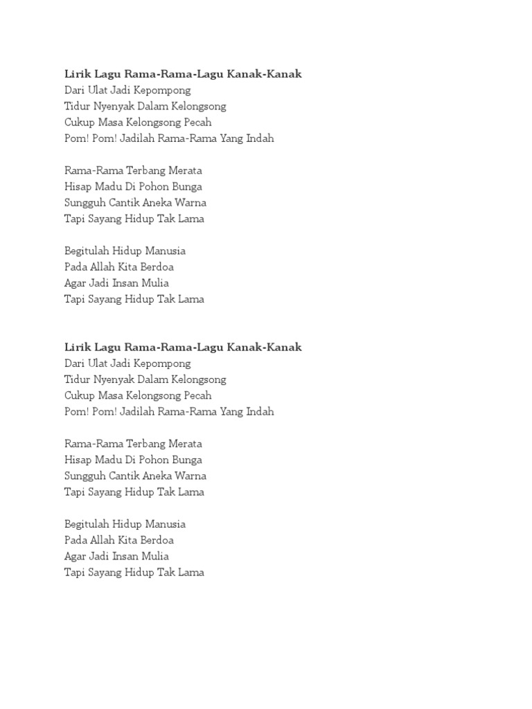 Lirik Lagu Kanak Kanak Rama Rama Pdf